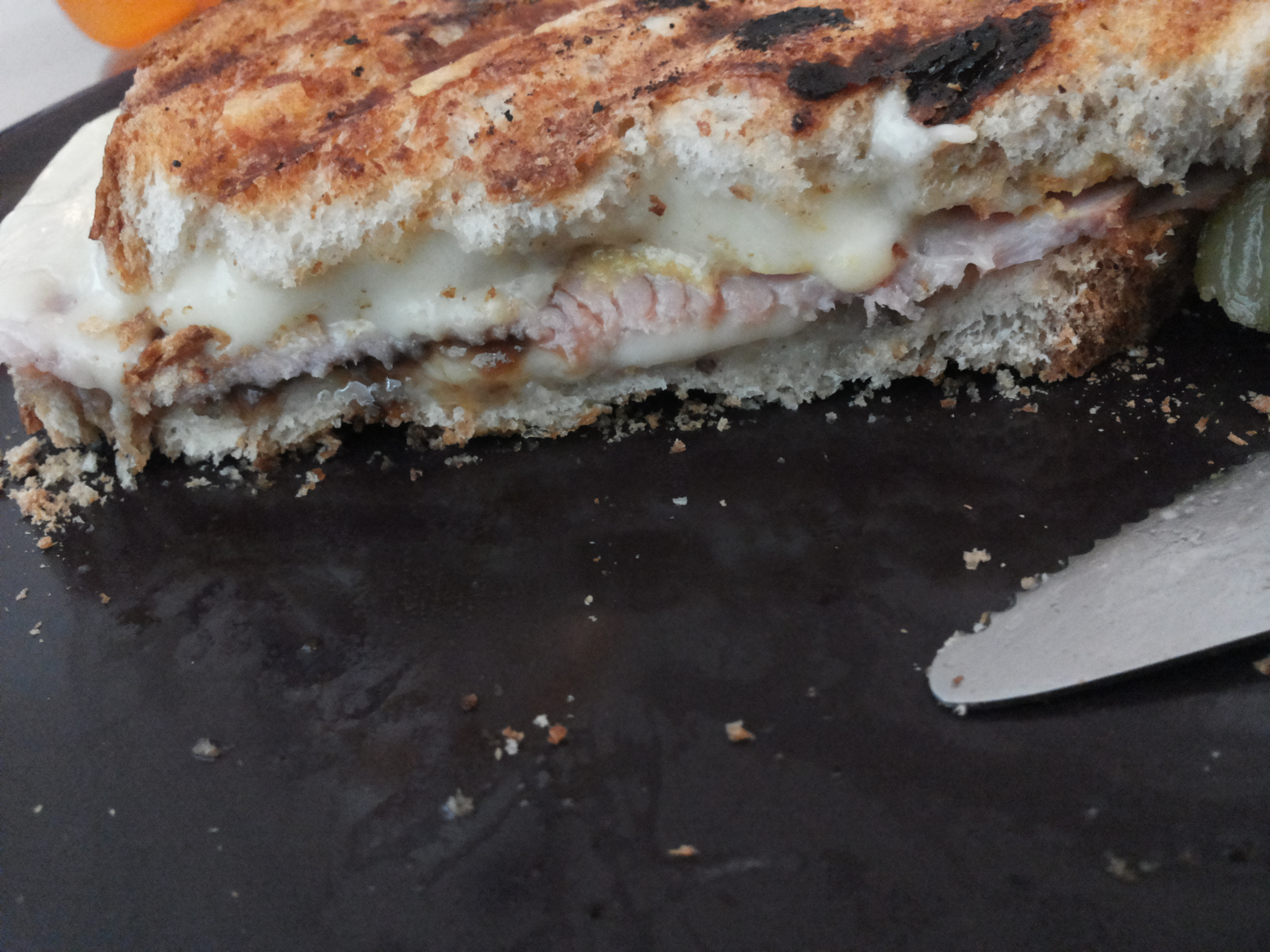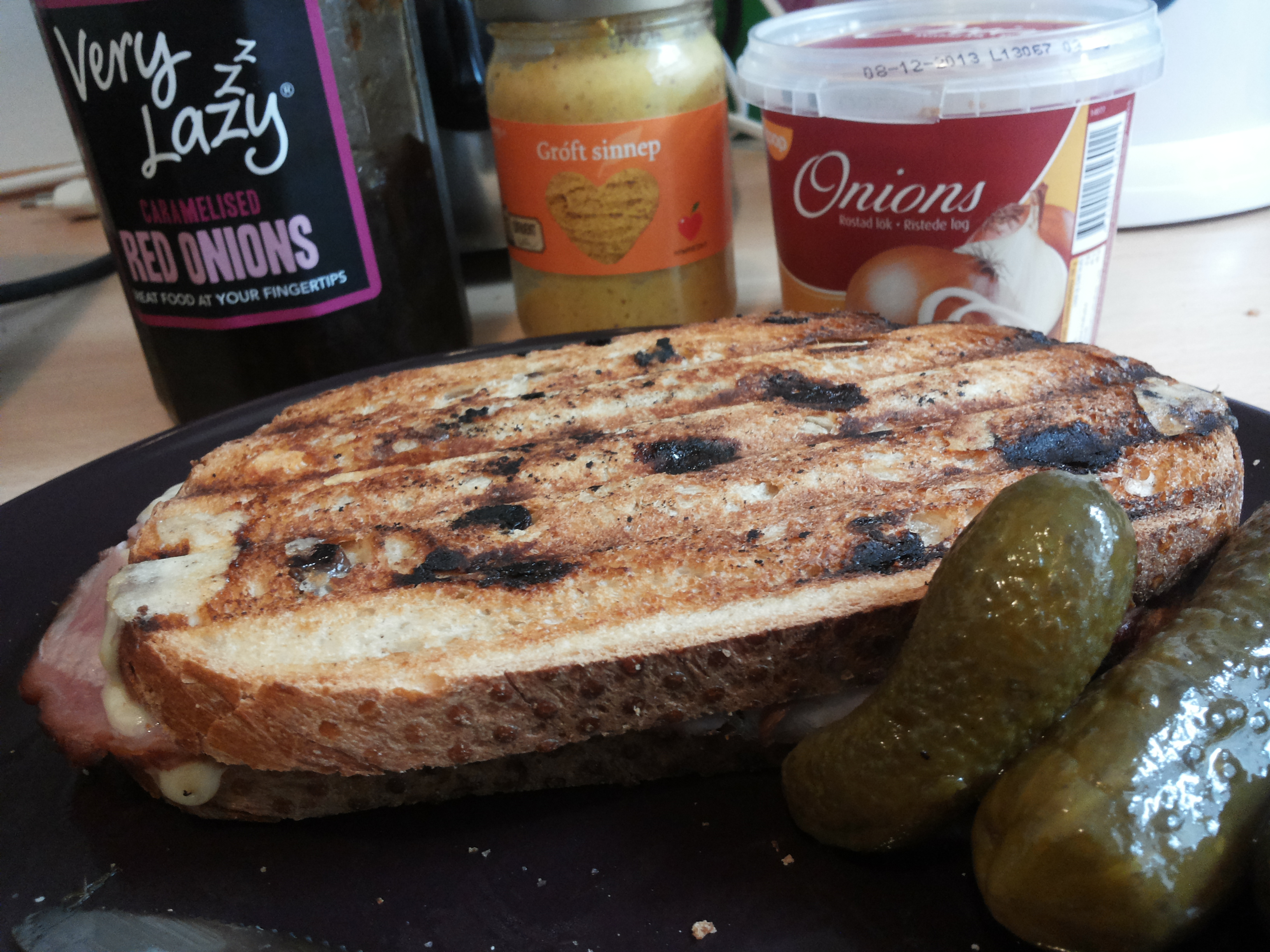 Baleron skinkan hjá Pylsumeistaranum við Laugalæk er náttúrulega rosaleg, hún er léttreykt og bragðast góð ein og sér. Í þessa samloku notaði ég rússneska rúsínubrauðið úr Korninu (sem ég er með alvarlegt blæti fyrir).