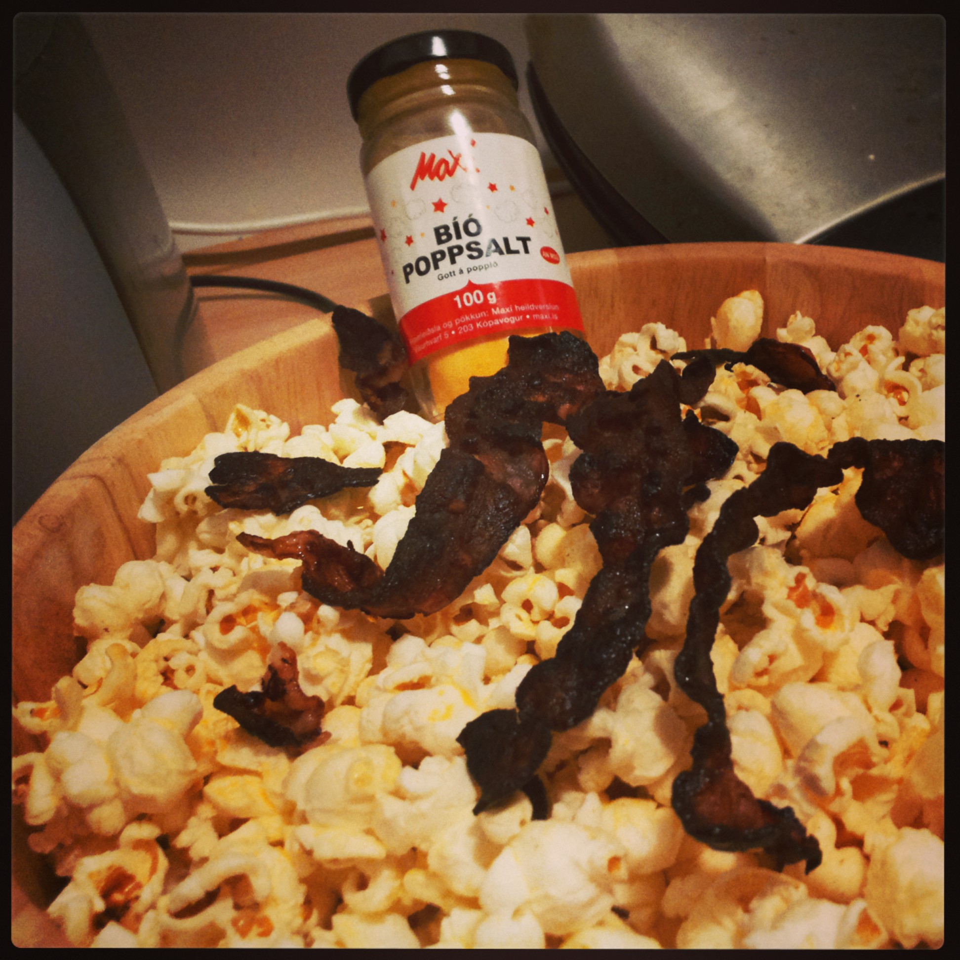 Ég skellti þess vegna í baconpopp, ég er mikill poppmaður og á mína leyniuppskrift sem ekki verður gefin upp að sinni.
