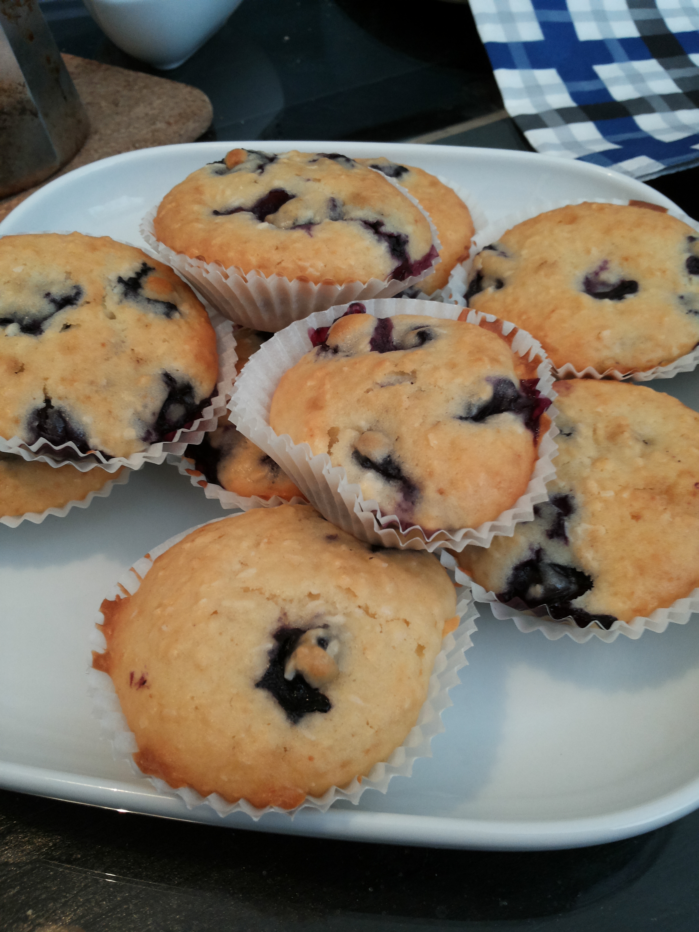 Að þessu sinni skellti ég í amerískar bláberja og kókos múffur.