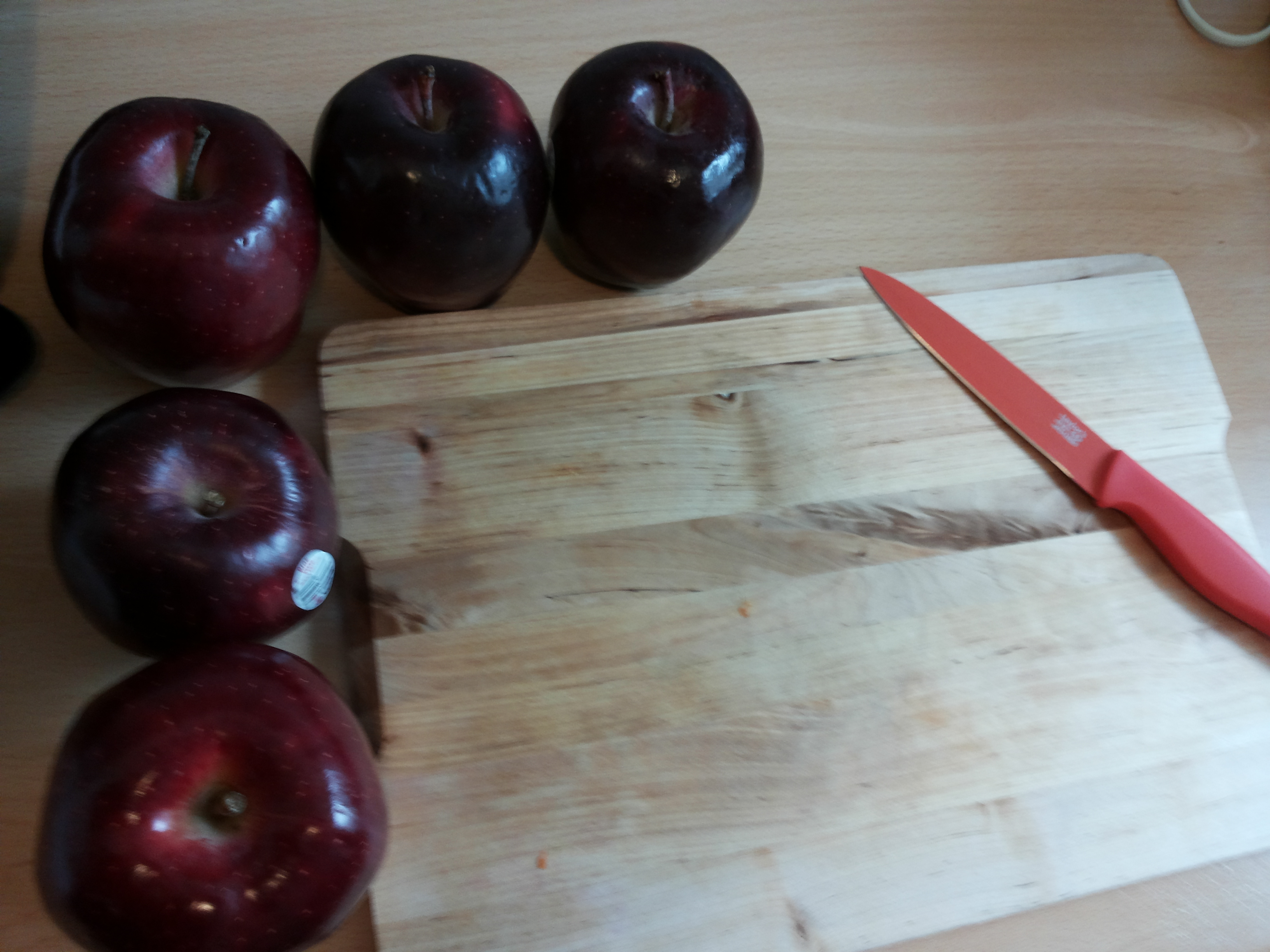 Eplin eru skræld og skorin í litla bita, raðað í form og kanil stráð yfir. Súkkulaðinu er svo troðið inn á milli. Sykur, hveiti og smjörið (í teningum) er svo sett í matarvél og mixað vel saman og svo hnoðað saman, þarf ekki að vera einn köggull.