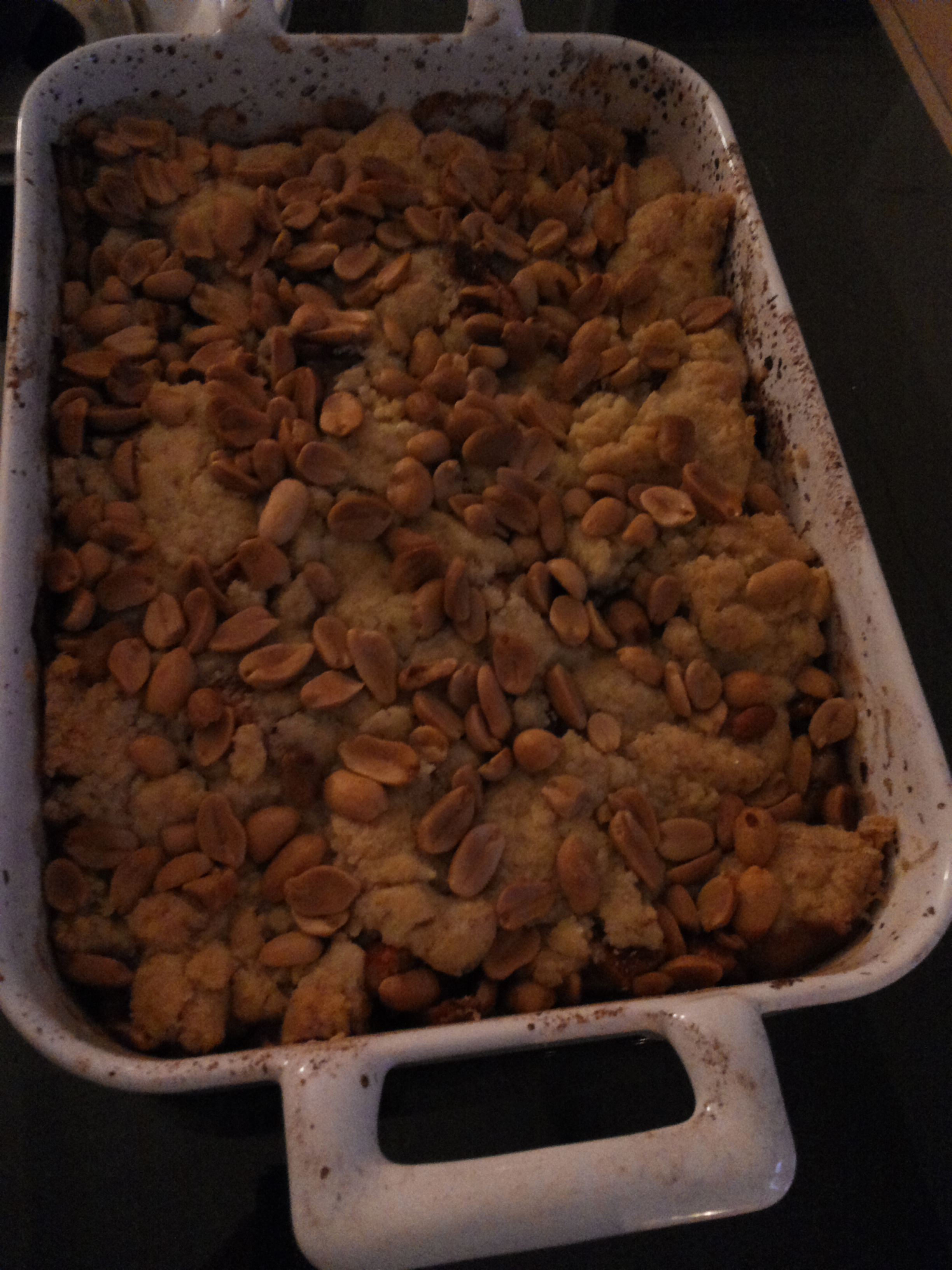 Deigið er svo mulið yfir og salthnetum stráð yfir (eins mikið og hver vill).