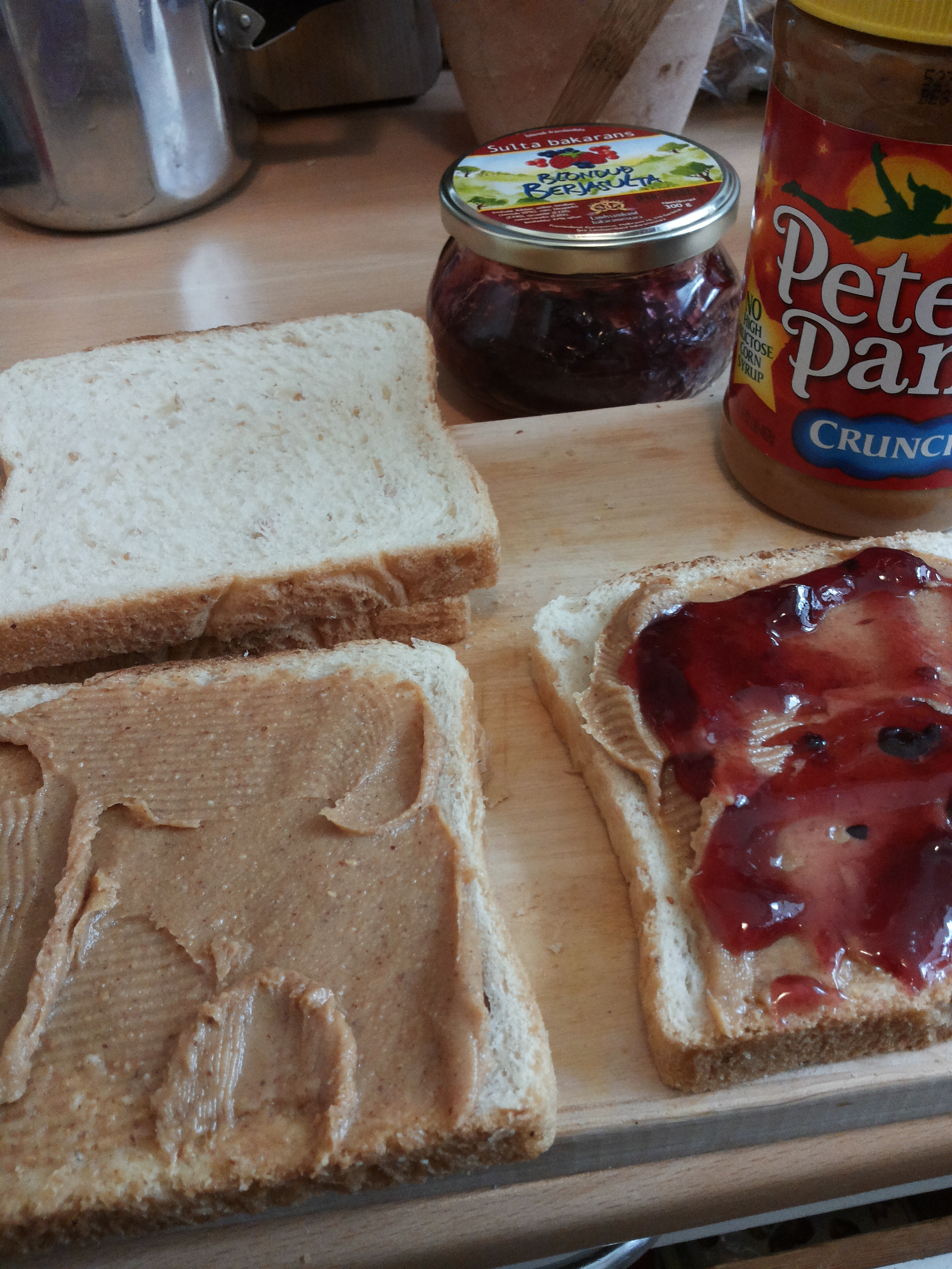 Mjööög basic og gott..og amerískt, crunchy hnetusmjör og berjasulta.