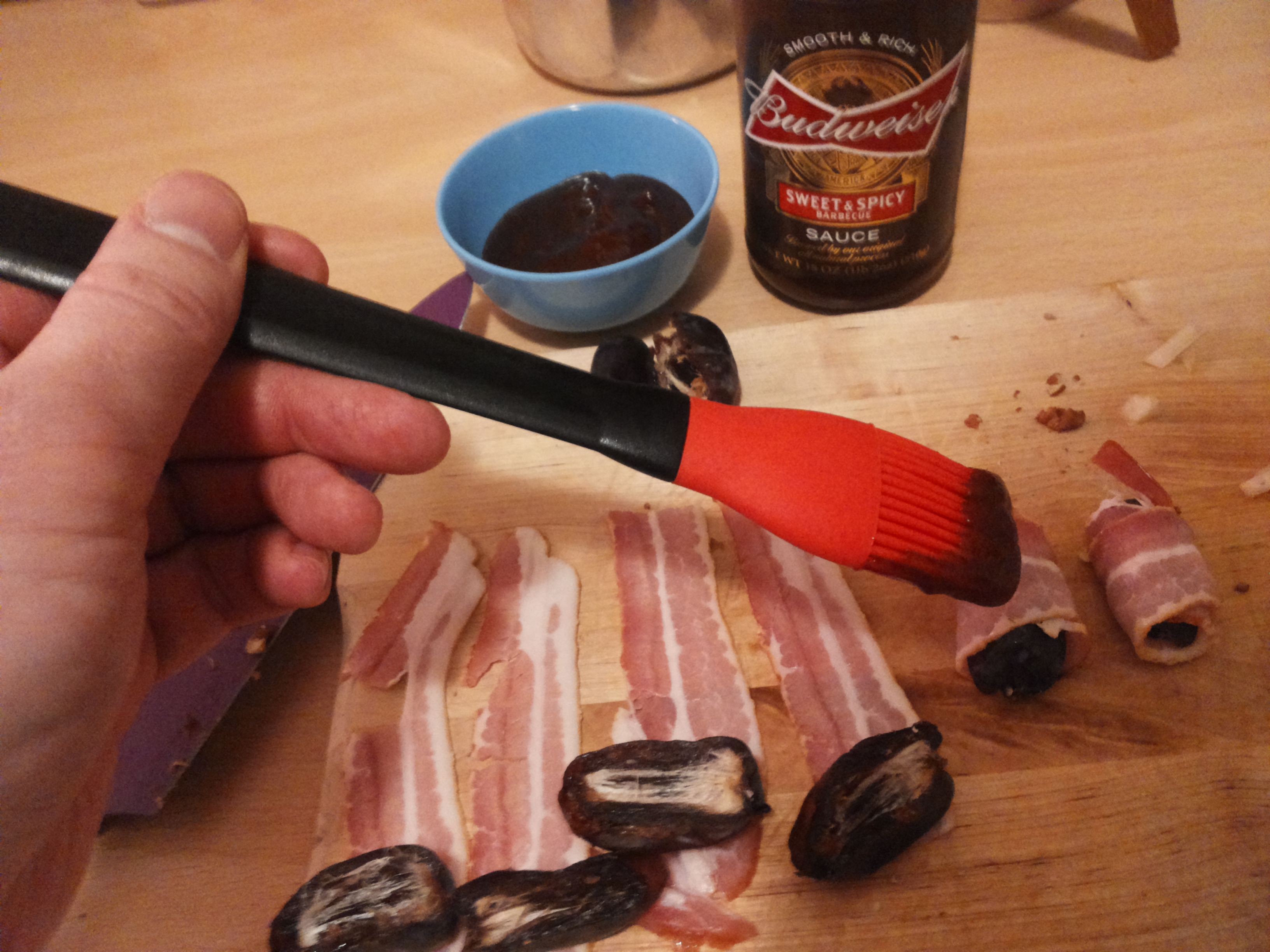 Ég setti líka í fatið bbq-smurðar-beikonvafðar döðlur.