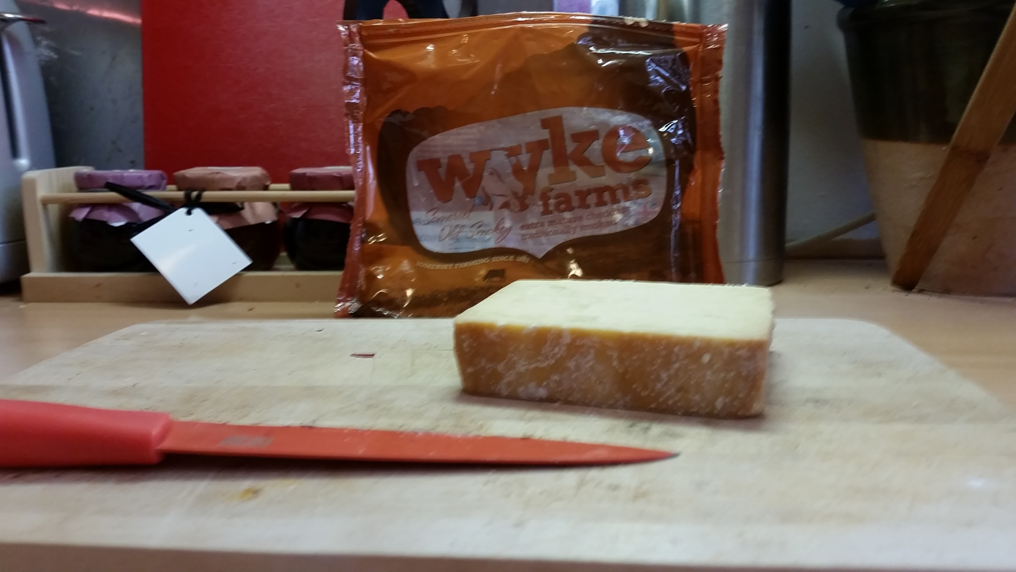 Það er ansi mikið úrval hjá þeim en ég endaði á pylsu sem heitir Kulen og inniheldur svínakjöt og reykta papriku. Ég setti síðan rauðlauk í hálfmánann og svo fann ég dásamlegan reyktan cheddar ost í Krónunni í Nóatúni frá Wyke Farms, uppáhalds cheddar osturinn minn er reyndar Applewood ostur sem fæst í ostaborðinu í Hagkaup, en þessi er næstum jafn góður og hann er tvöfalt ódýrari.