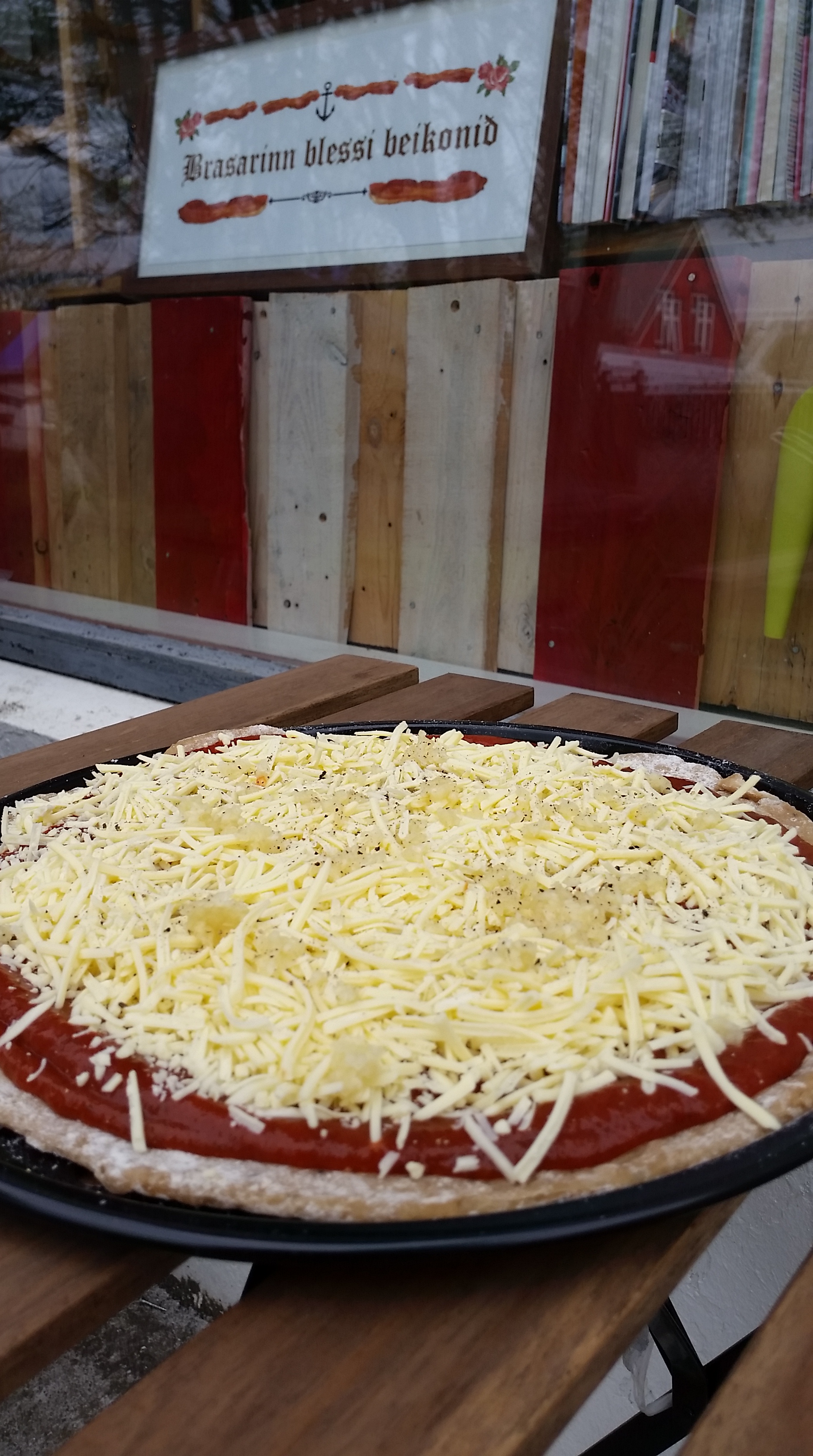 Það er öðruvísi stemming í þessu og mjög ólíkt því að baka í ofni, maður þarf að passa sig að brenna ekki botninn, getur verið gott að setja upprúllaðan álpappír undir plötuna til að fjarlægja pizzuna frá eldinum.