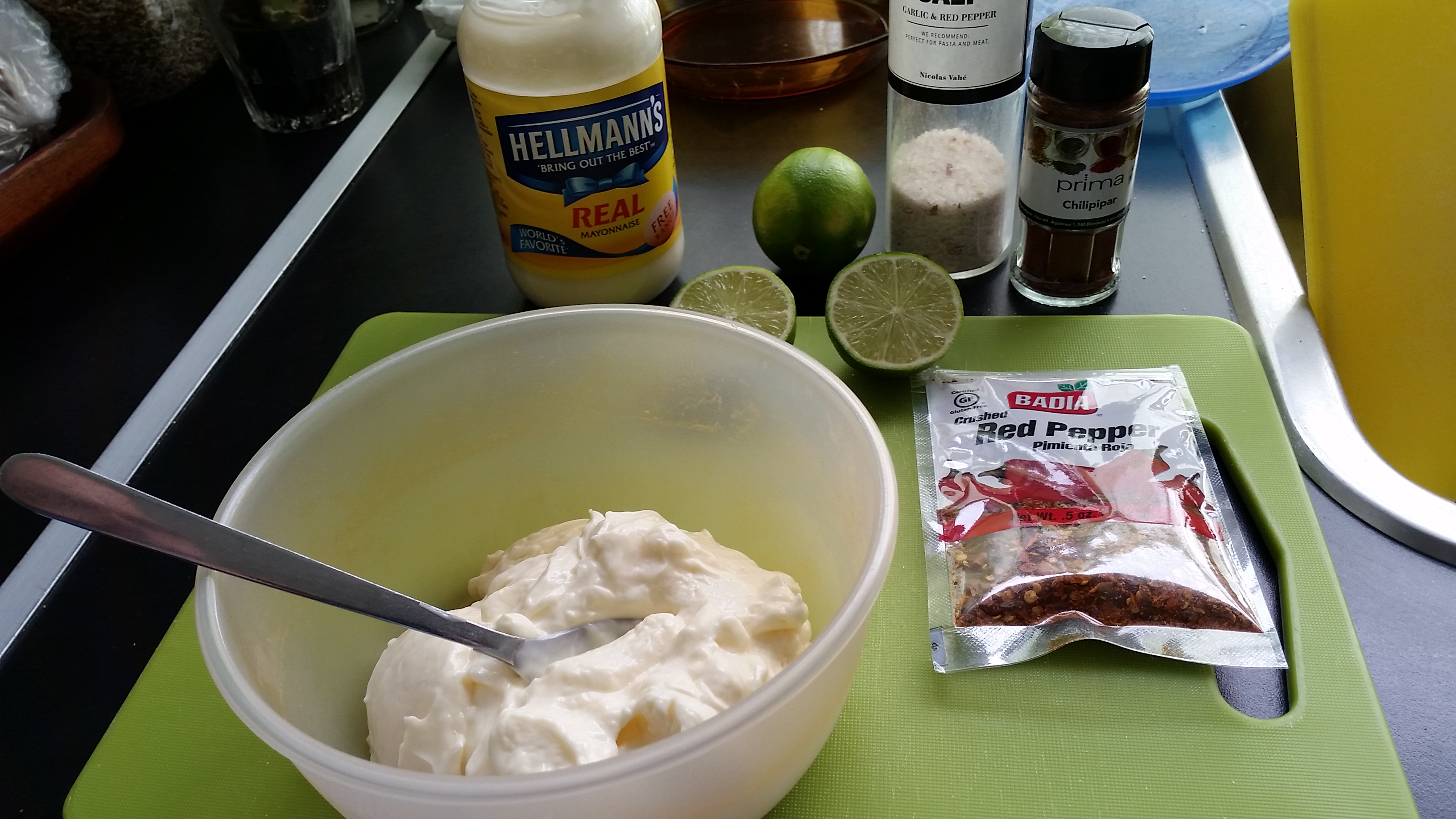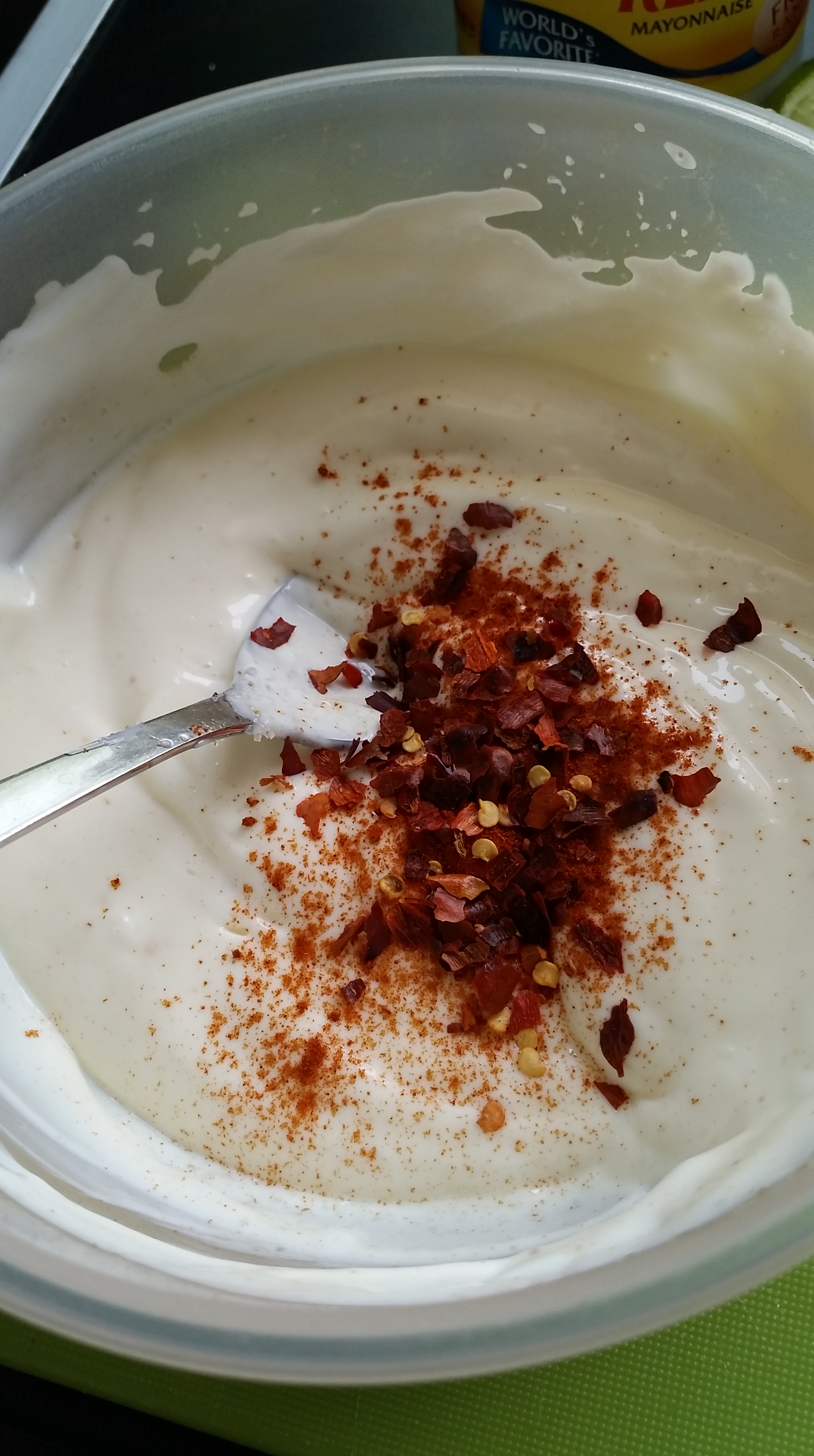 Síðan er hann smurður með chilli mæjónesinu: