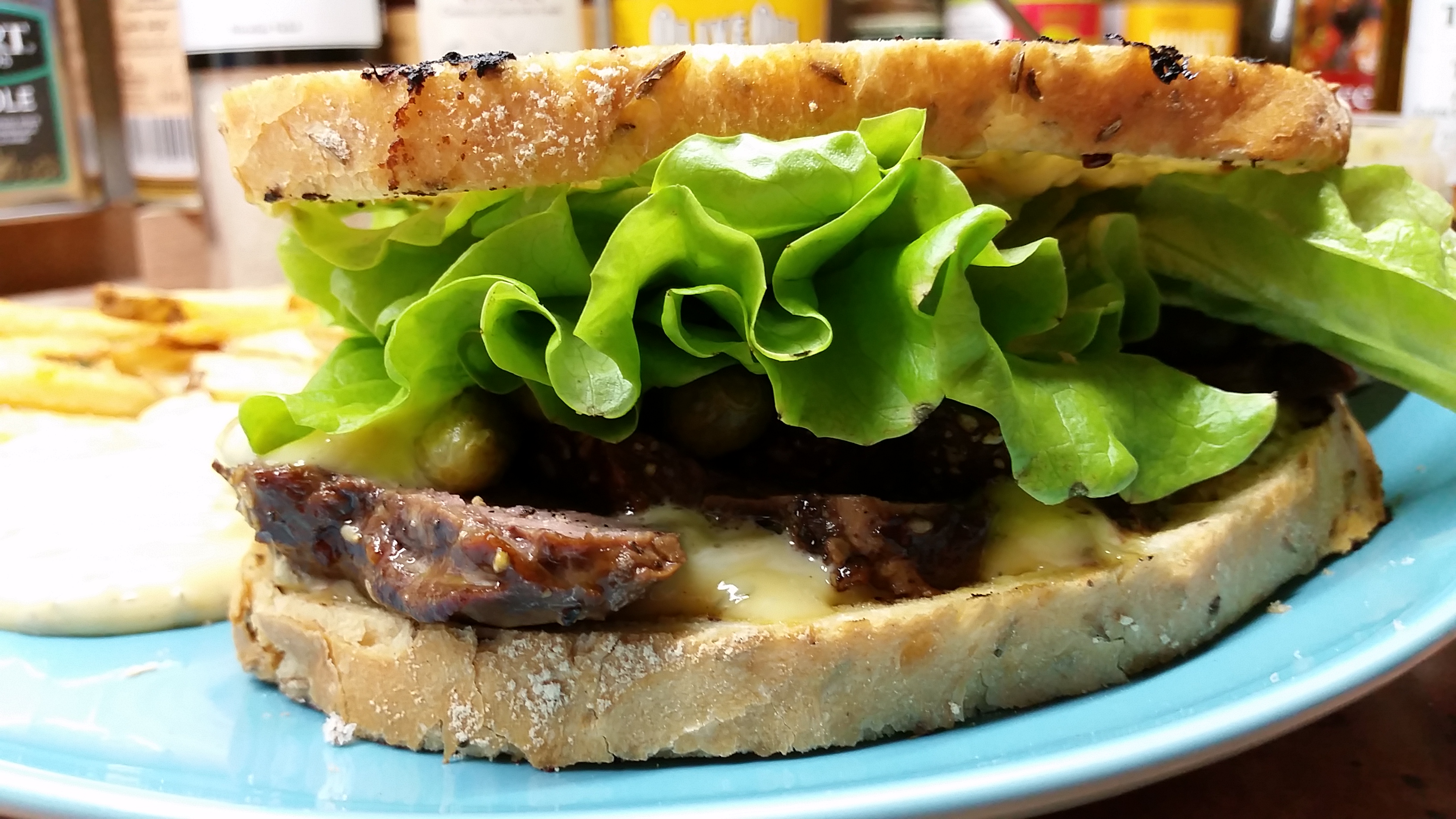 Laugardagskvöld, steikarsamloka, fer vel saman.