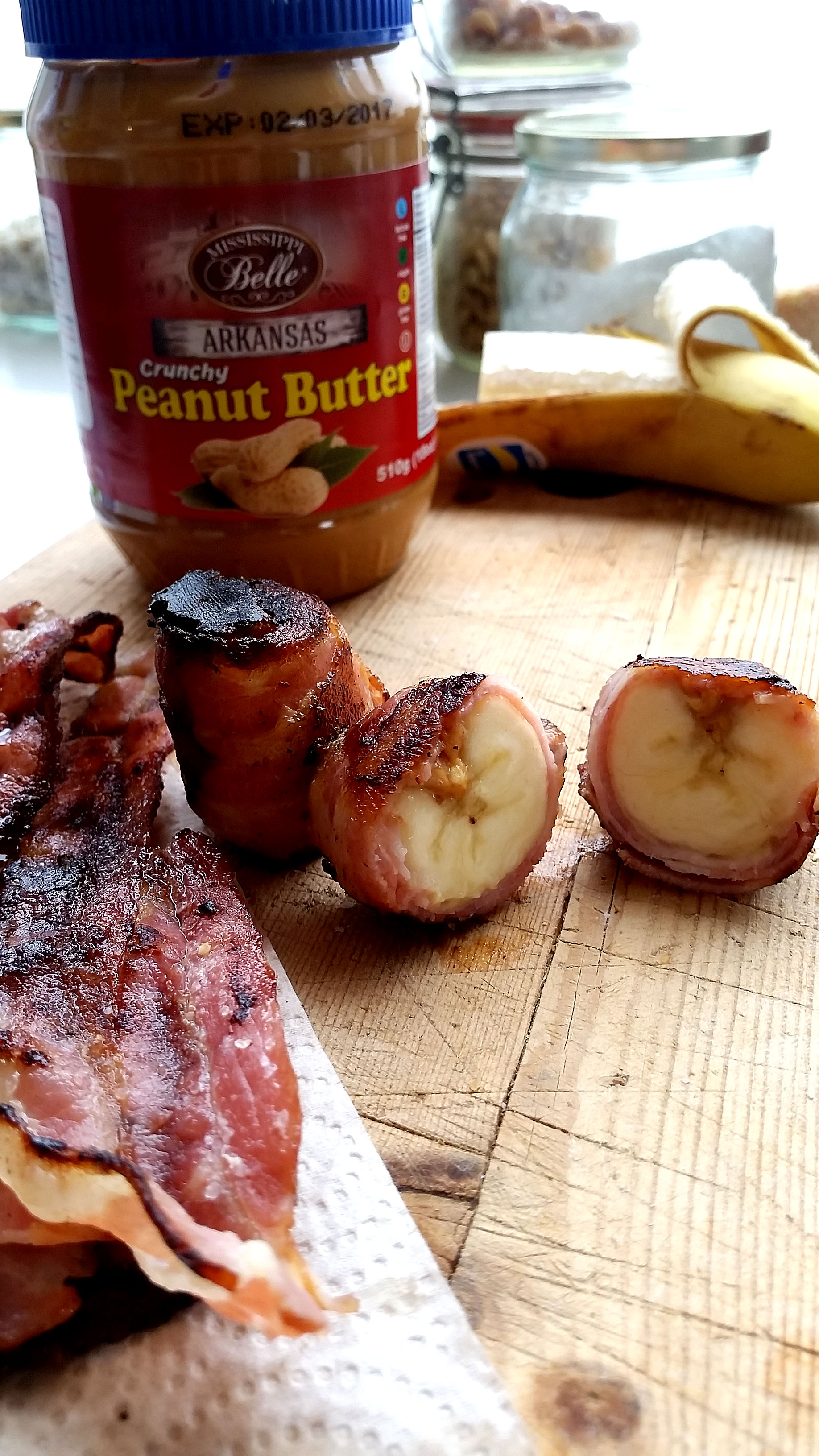 Beikonvafinn banani fylltur með hnetusmjöri