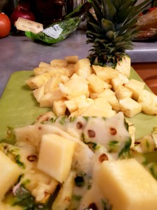 Trópískar núðlur með beikon og ananas