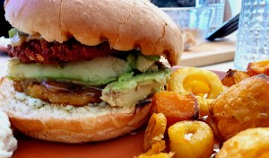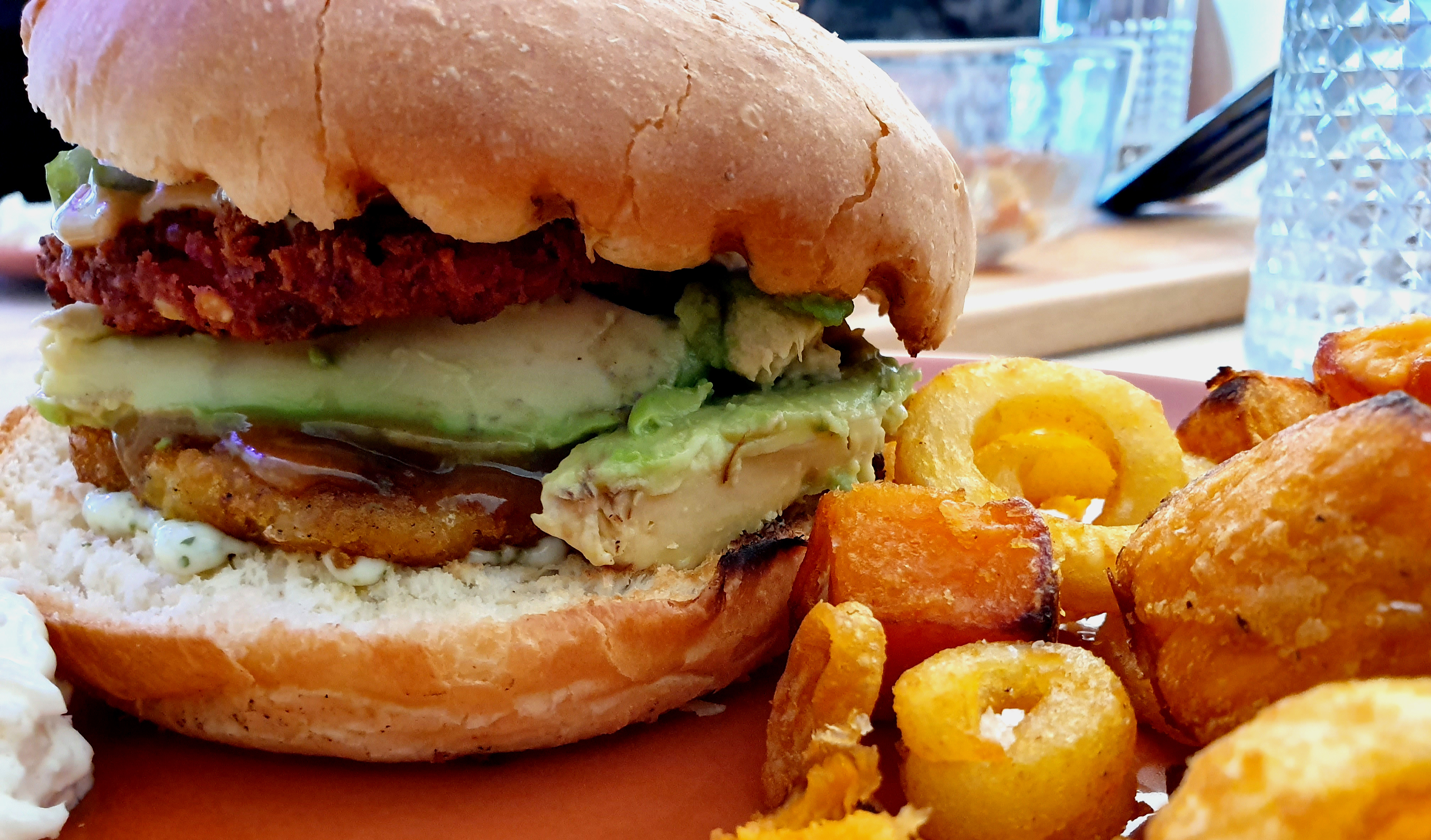 Rauðrófuborgari með hnetusmjöri og rauðlaukssultu